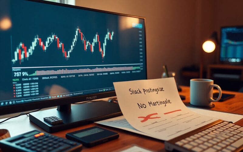 You can size positions as a fixed fraction of your equity-commonly between 1% and 2% risk per trade. For example, with $100,000 equity and a 1% risk rule you allow $1,000 maximum loss per trade; if your stop is 2% away, position size = $1,000 / 0.02 = $50,000 notional. That simple arithmetic makes drawdown behavior predictable: thirty consecutive 1% losing trades leaves you at 0.99^30 ≈ 73.9% of starting equity, which is manageable compared with exponential ruin under martingale.